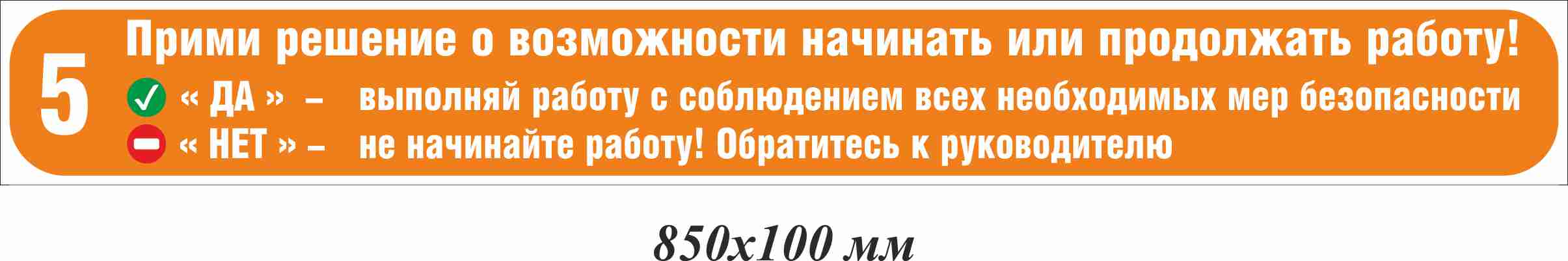 Прими решение о возможности начинать или продолжать работу 850х100 мм