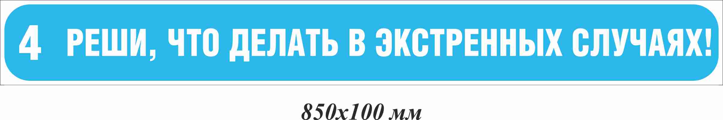 Наклейка информационная на ступени 4, Реши, что делать в экстренных случаях! 850х100 мм, материал пленка ПВХ самоклеящаяся, форма прямоугольная края закругленные, цвет белый/синийАрт. IT-850x100-PS1