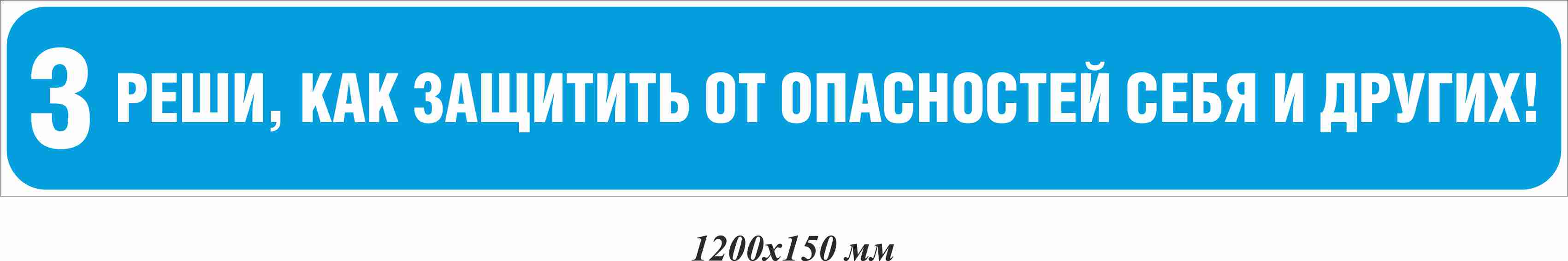 Наклейка информационная на ступени 3, Реши, как защитить от опасностей себя и других! 1200х150 мм, материал пленка ПВХ самоклеящаяся, форма прямоугольная края закругленные, цвет белый/синийАрт. IT-1200x150-PS1