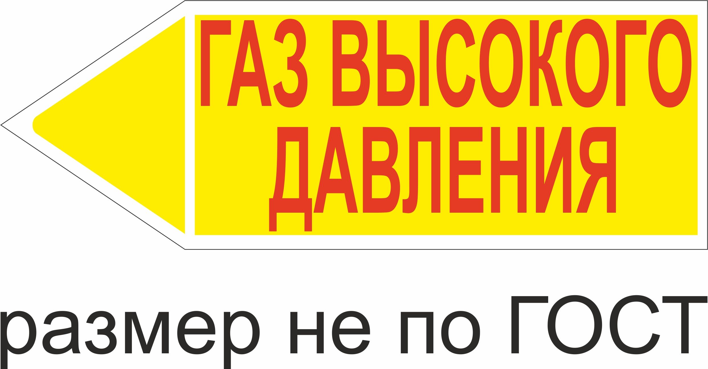Маркер самоклеящийся Газ высокое давление 105х297 мм, фон желтый, буквы красные, налево