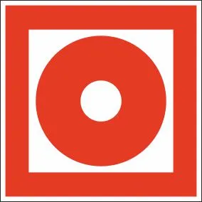 F10 Кнопка включения средств и (систем) пожарной автоматики. 150x150. Оцинкованный металл 05мм. Плёнка самоклеящаяся фотолюминесцентная.