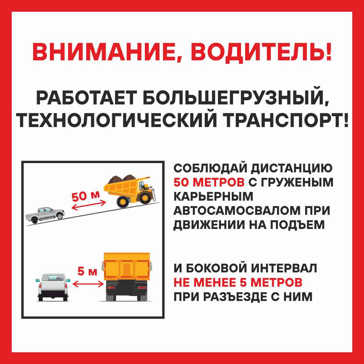 Табличка "Работает большегрузный технологический транспорт