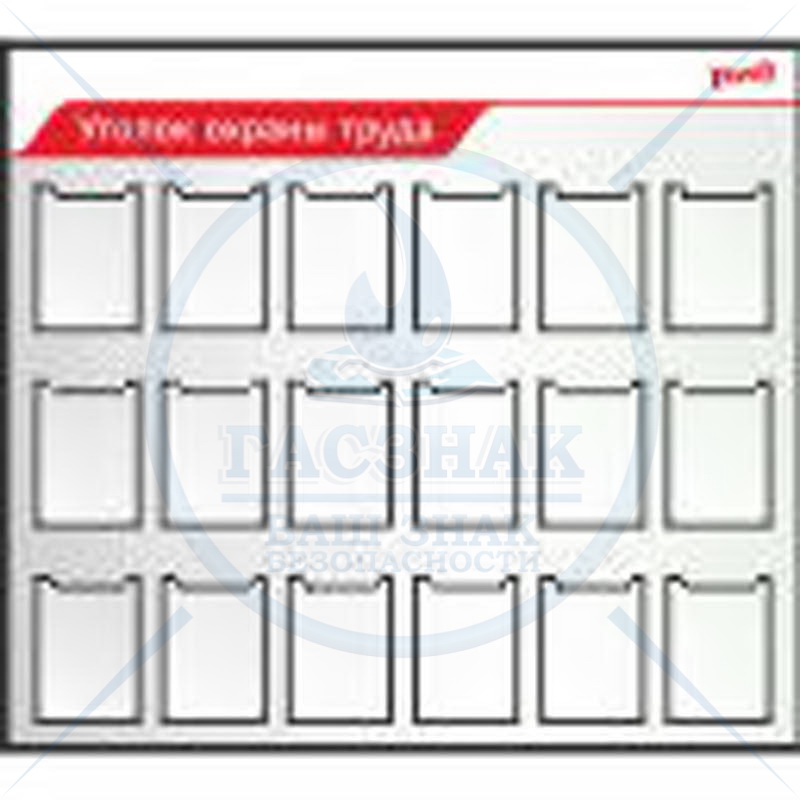 Стенд по охране труда для ОАО РЖД Охраны труда, металлокомпозит, 3 мм с профилем NIELSEN, с 6-ю карманами и перекидной системмой А4 на 10 рам.(1400х1200)