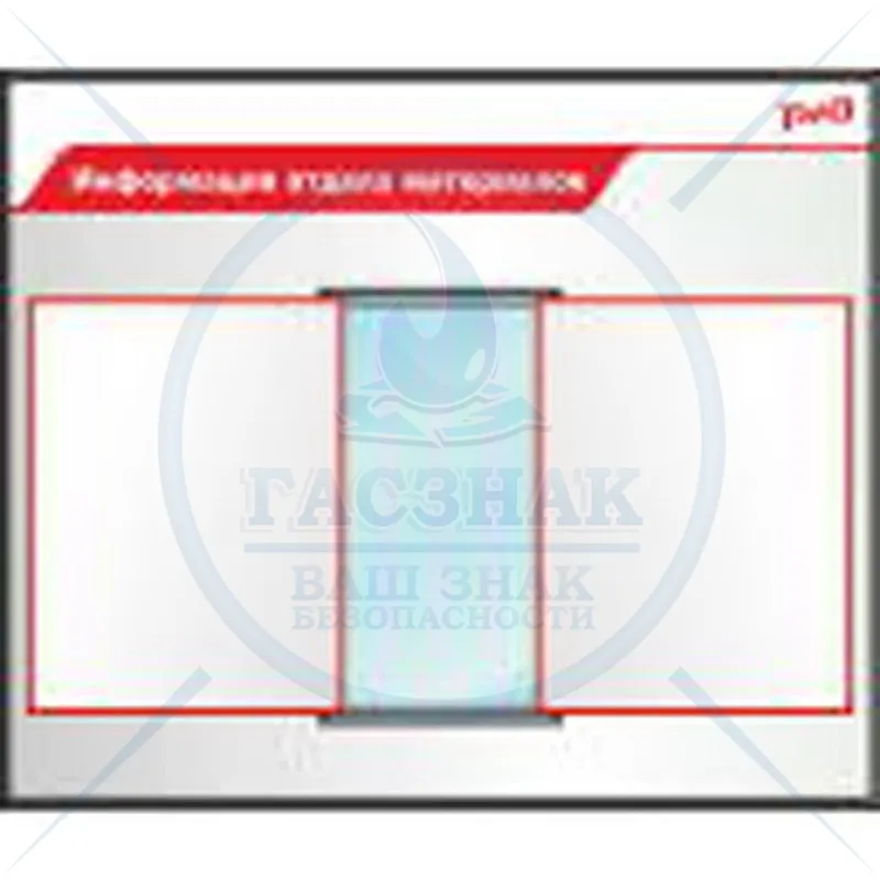 Стенд Информация РЖД, 5 карманов А4 пл., 2 кармана А4 объемн., перекидная система на 6 ячеек (1400х1200; Пластик ПВХ 4 мм, алюминиевый профиль; )