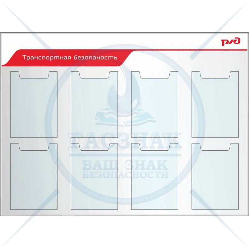 Стенд Информация РЖД, 6 карманов А4 пл., 1 карман А4 объемн., 1 карман 1-3 А4 объемный (1200х1200; Пластик ПВХ 4 мм, алюминиевый профиль; )