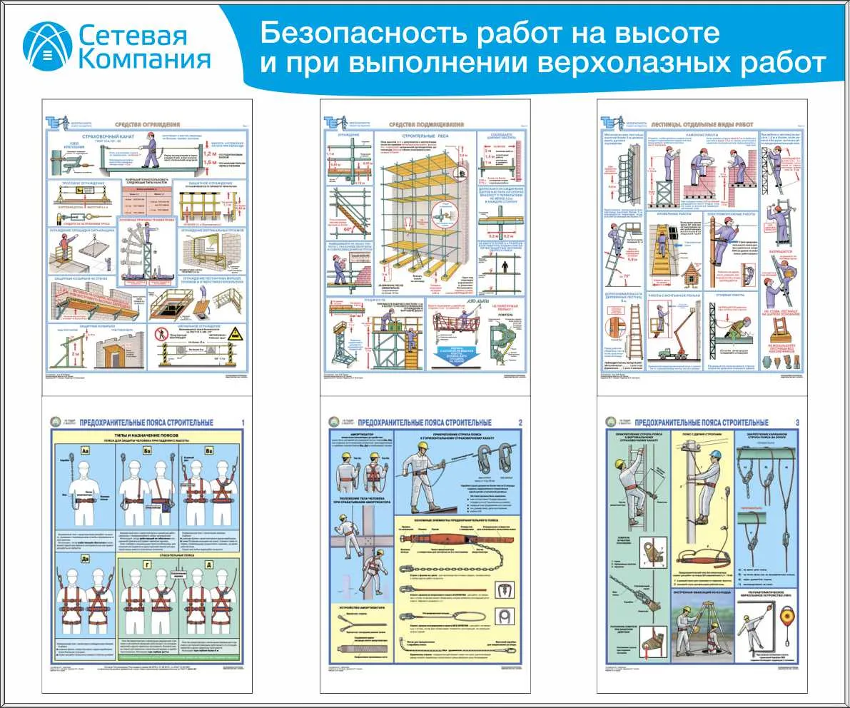 Стенд для ОТ безопасность работ на высоте и при выполнении верхолазных работ, 6 плак. А3 (1 200х1 000; Пластик ПВХ 4 мм, Алюминиевый профиль)