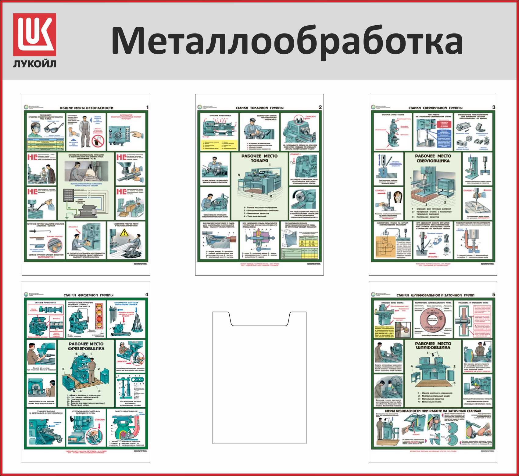 Стенд Металлообработка, 5 плакатов А3, 1 карман А4, Логотип (1200х1100; Пластик ПВХ 4 мм, алюминиевый профиль; Алюминиевый профиль)