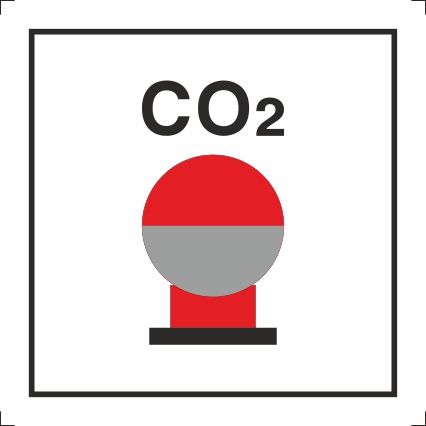 Знак ИМО Стационарный сосуд системы пожаротушения углекислотой, размещенный в защищаемой зоне (CO2 bottles in protected area)